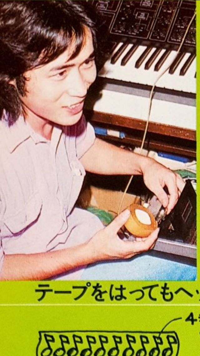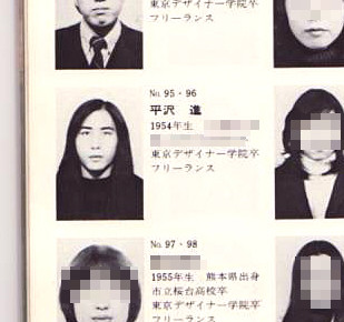a college yearbook photo of susumu hirasawa in 1975. he graduated with an interior design degree, of all things